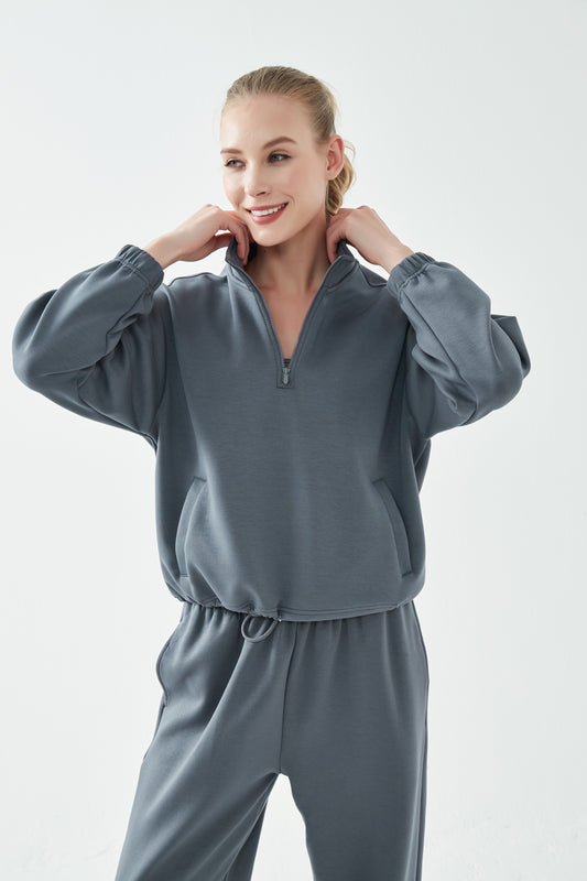 JIOSE HIGH NECK ZIP-UP LOOSE-FIT HOODIE | EVERYDAY WEAR